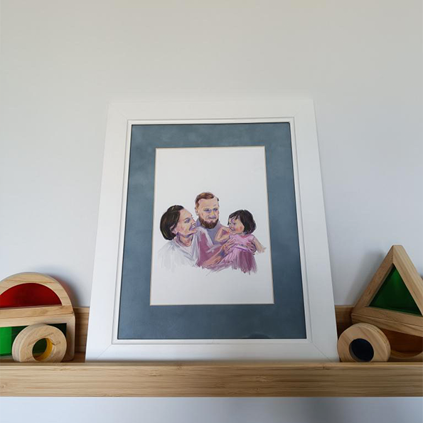 Three digital portraits as a first birthday present.